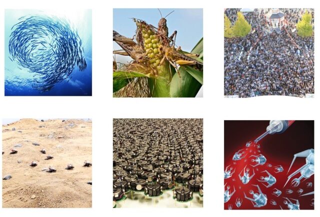 When a large number of individuals move collectively, how is the overall behavior determined? And is it possible to guide such a swarm toward an intended direction using only small external interventions?
